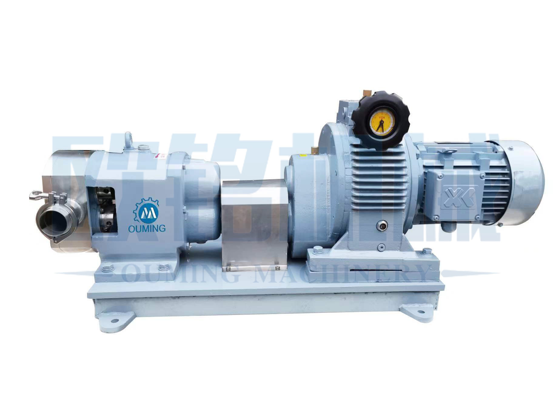 該產(chǎn)品借助于工作腔里的多個(gè)固定容積輸送單位的周期性轉(zhuǎn)化來(lái)達(dá)到輸送流體的目的。原動(dòng)機(jī)的機(jī)械能通過(guò)泵直接轉(zhuǎn)化為輸送流體的壓力能,泵的流量只取決于工作腔容積變化值以及其在單位時(shí)間內(nèi)的變化頻率,而(理論上)與排出壓力無(wú)關(guān);轉(zhuǎn)子泵依靠?jī)蓚€(gè)同步反向轉(zhuǎn)動(dòng)的轉(zhuǎn)子(轉(zhuǎn)子葉數(shù)為2-8)在旋轉(zhuǎn)過(guò)程中于進(jìn)料口處產(chǎn)生吸力(真空度),兩轉(zhuǎn)子將轉(zhuǎn)子室分隔成幾個(gè)小空間,在傳動(dòng)軸的帶動(dòng)下進(jìn)行反方向旋轉(zhuǎn),介質(zhì)即被輸送至出料口,從而產(chǎn)生了較高的排放壓力,如此往復(fù)循環(huán),特別適合中高粘度介質(zhì)的輸送。